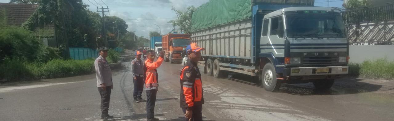 Ciptakan Situasi Lalu Lintas Aman, Bripka Leo & Dishub Laksanakan Gatur Lalin Sore Hari Di Jalan Raya PT SMI Bojonegara