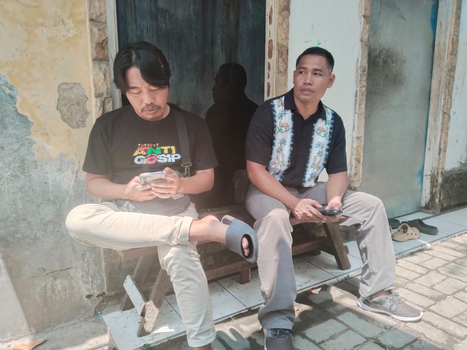 Personil sat intelkam melakukan koordinasi dengan tokoh masyarakat kec. Anyar kabupaten serang.