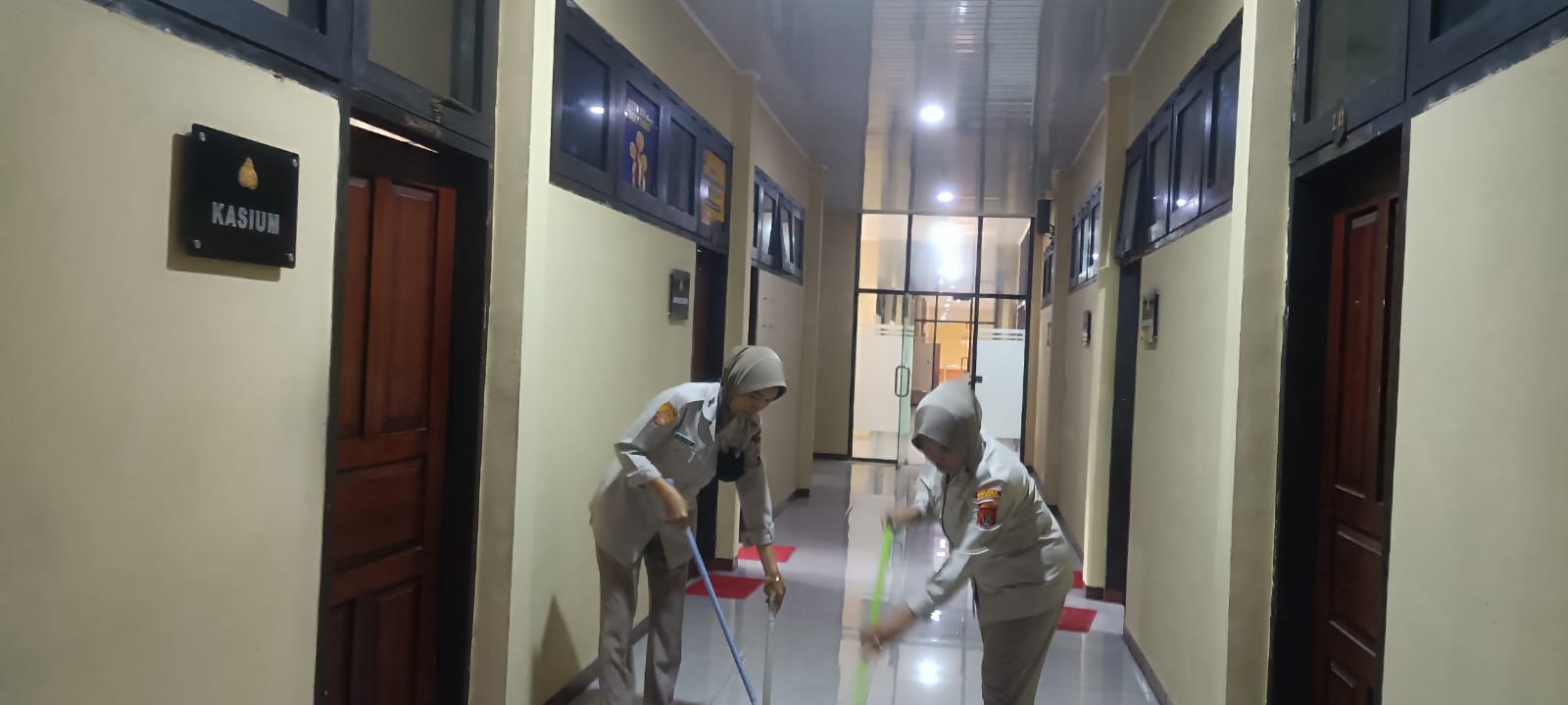Ciptakan Suasana Nyaman, Personel SIUM Polres Cilegon Bersihkan Ruangan