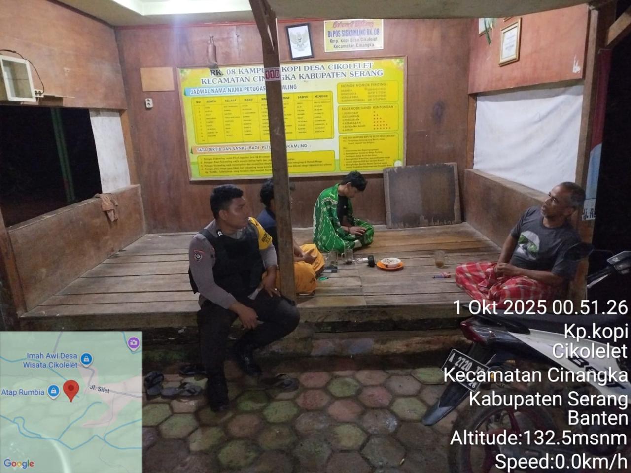 *Polres Cilegon* || Personil Bhabinkamtibmas Polsek Cinangka melaksanakan Program Komandan Wish Kapolda Banten RONDA SATKAMLING menyampaikan komunikasi dengan Petugas Siskamling agar berperan aktif dalam menciptakan Harkamtibmas yang aman dan Kondusif, Rabu (01/10/2025).