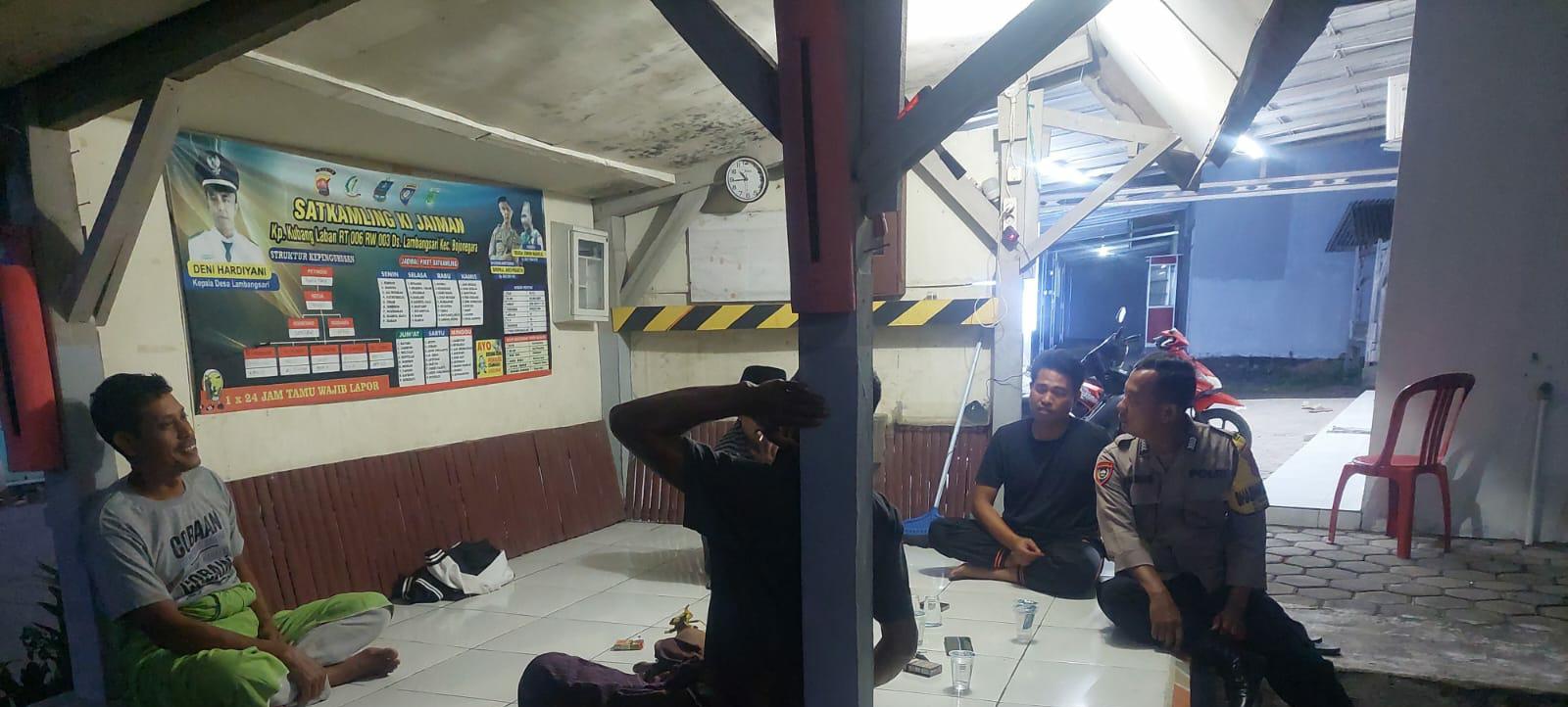 Cilegon ~ Dalam rangka membina hubungan yang baik dan sinergitas antara aparat keamanan dengan seluruh unsur masyarakat, Kanit Provost dan Bhabinkamtibmas Polsek Bojonegara Polres Cilegon melakukan kegiatan sambang malam hari dan Kontrol Pos Ronda dengan bersilaturrahmi terhadap masyarakat di Desa Kertasana, Jumat ( 03/10/2025)