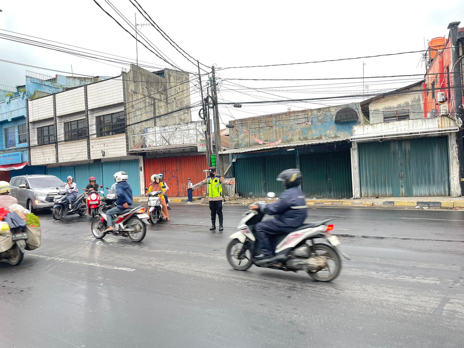Polres Cilegon, Brigpol Hadi sudrajat melaksanakan kegiatan pengaturan arus