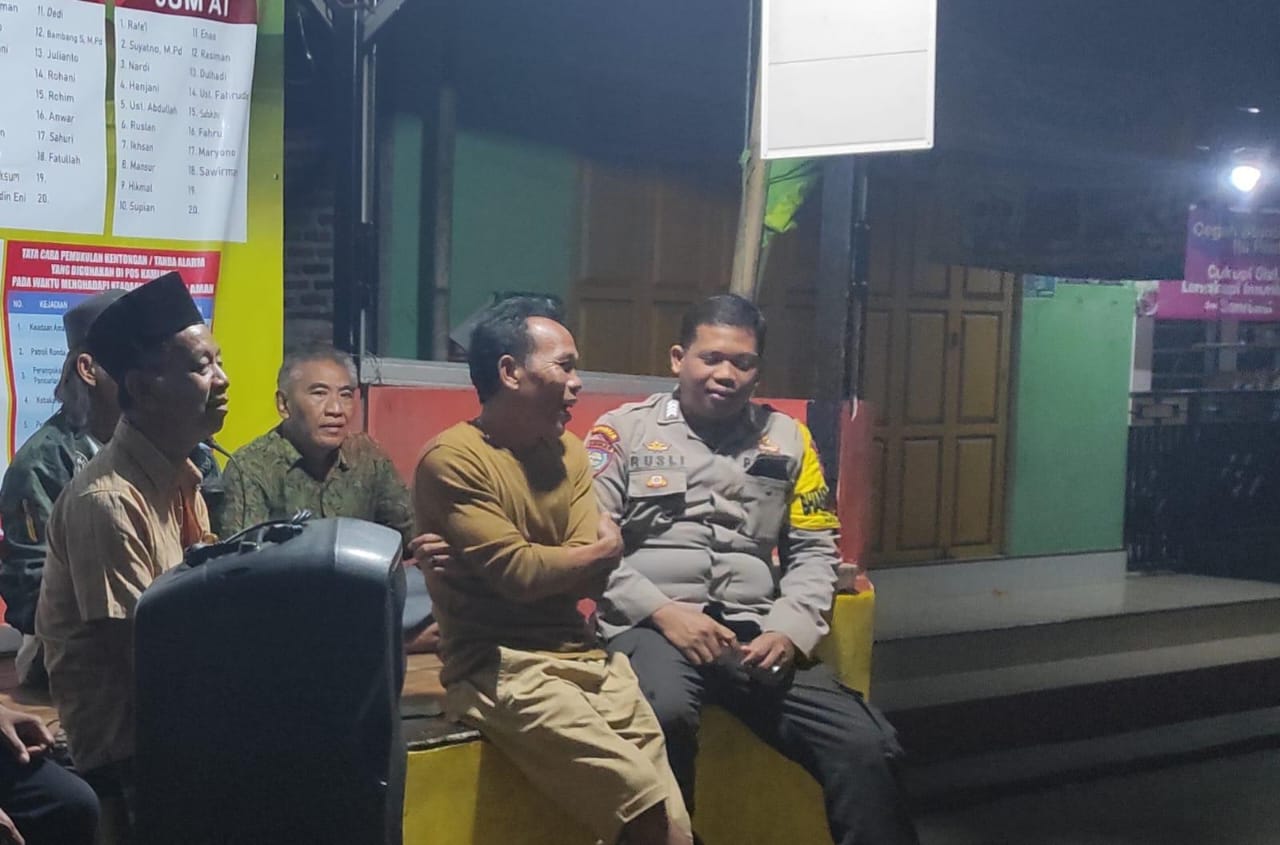 Cilegon - Personel Bhabinkamtibmas Polsek Anyar Polres Cilegon Polda Banten melaksanakan sambang Ronda Siskamling Dalam rangka menjaga Harkamtibmas dan Sebagai bentuk mendukung Program Quick Wins Presisi Polri, Senin (06/10).