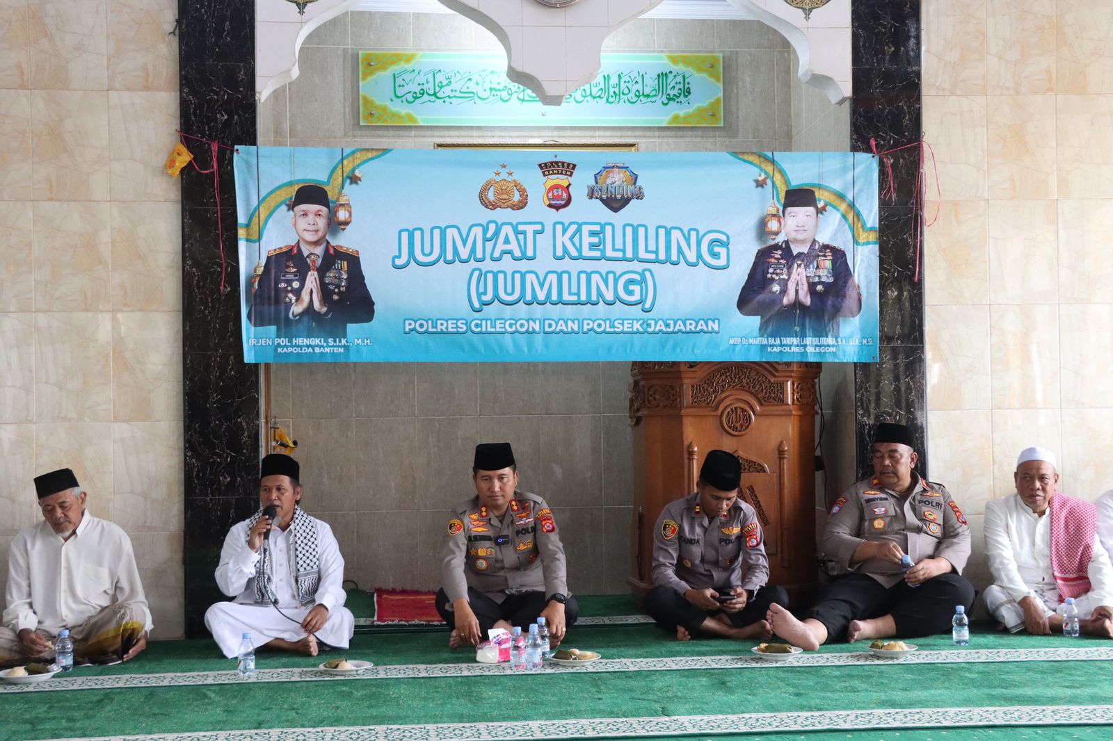Cilegon – Dalam rangka mempererat hubungan antara Polri dan masyarakat, Kapolres Cilegon Polda Banten, AKBP Dr. Martua Raja Taripar Laut Silitonga, S.H., S.I.K., M.Si., melaksanakan kegiatan silaturahmi Jum’at Keliling (Jumling) di Masjid Al-Mutahidin, Blok Bango, Lingkungan Leuweung Sawo, Kelurahan Kotabumi, Kecamatan Purwakarta, Kota Cilegon. Kegiatan berlangsung hangat dan penuh kebersamaan usai pelaksanaan ibadah salat Jumat. Jumat (10/10/2025).