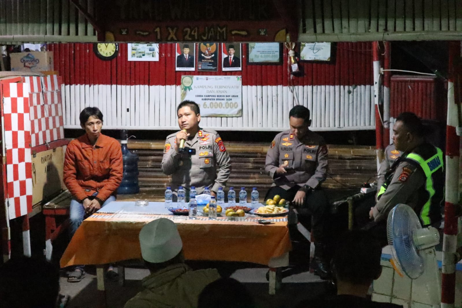 Cilegon – Dalam upaya memperkuat kemitraan antara Polri dan masyarakat dalam menjaga keamanan lingkungan, Kapolres Cilegon Polda Banten, AKBP Dr. Martua Raja Taripar Laut Silitonga, S.H., S.I.K., M.Si., melaksanakan kunjungan ke Pos Kamling Pandan Duri di Kampung Sumuranja Sabrang, Desa Sumuranja, Kecamatan Puloampel, Kabupaten Serang, Sabtu malam (11/10/2025).