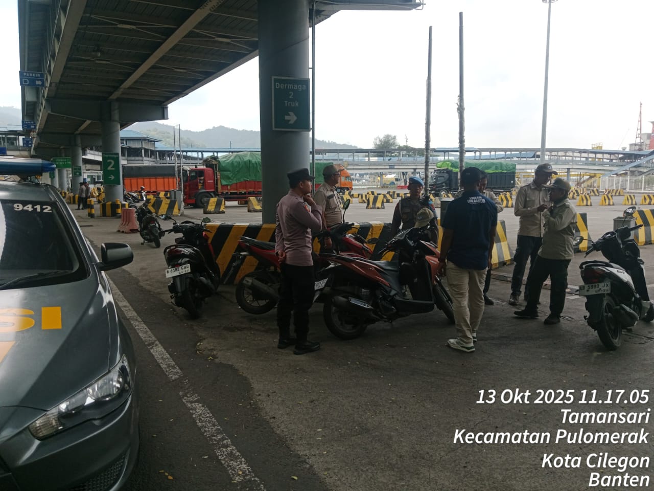 Cilegon - Personel Polsek Kskp Merak Polres Cilegon Polda Banten melaksanakan sambang dan patroli kawasan pelabuhan merak dalam rangka menjaga Harkamtibmas di Kawasan Pelabuhan Merak, Senin (13/10/2025).