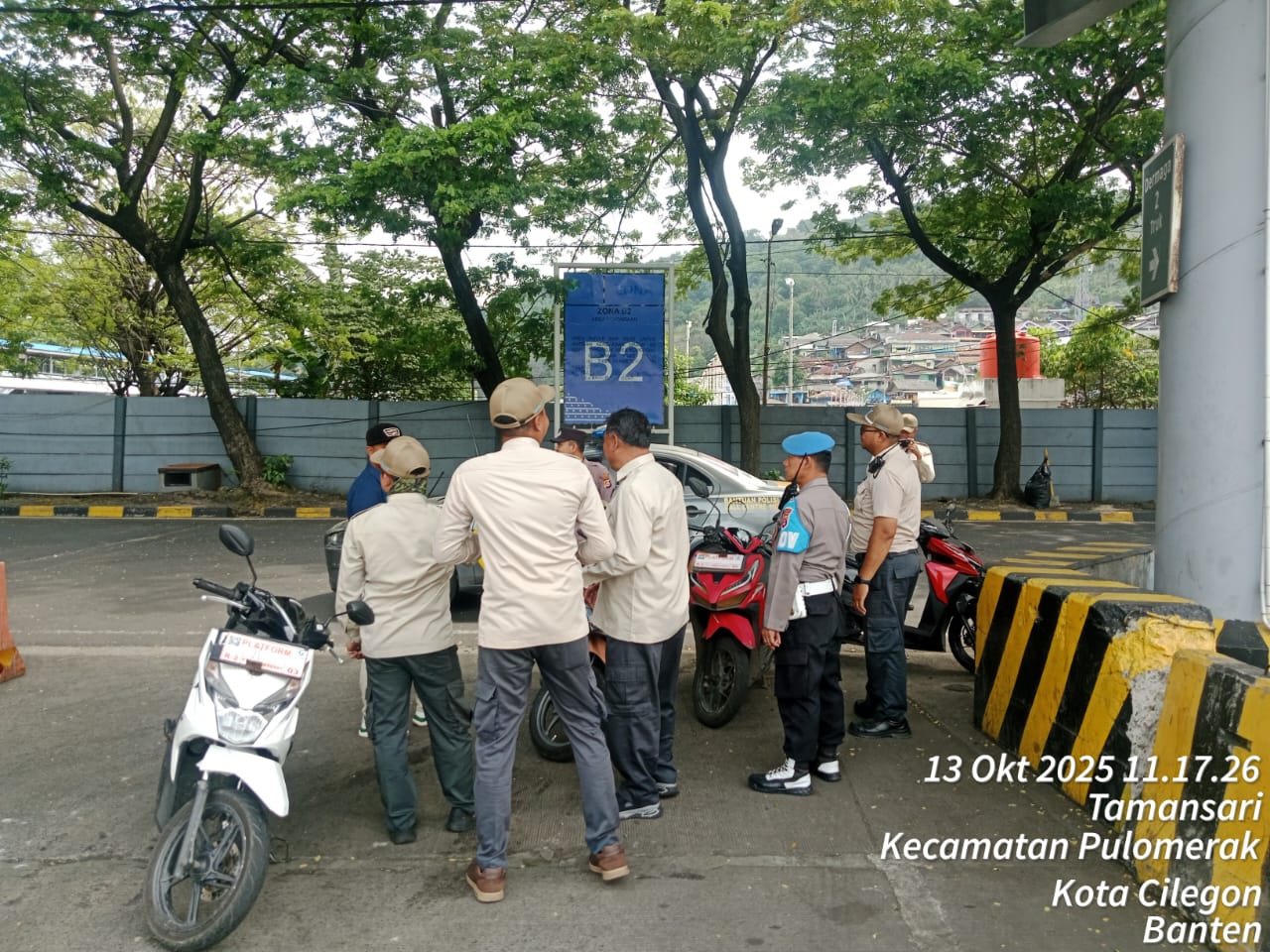 Cilegon - Personel Polsek Kskp Merak Polres Cilegon Polda Banten melaksanakan sambang dan patroli kawasan pelabuhan merak dalam rangka menjaga Harkamtibmas di Kawasan Pelabuhan Merak, Senin (13/10/2025).