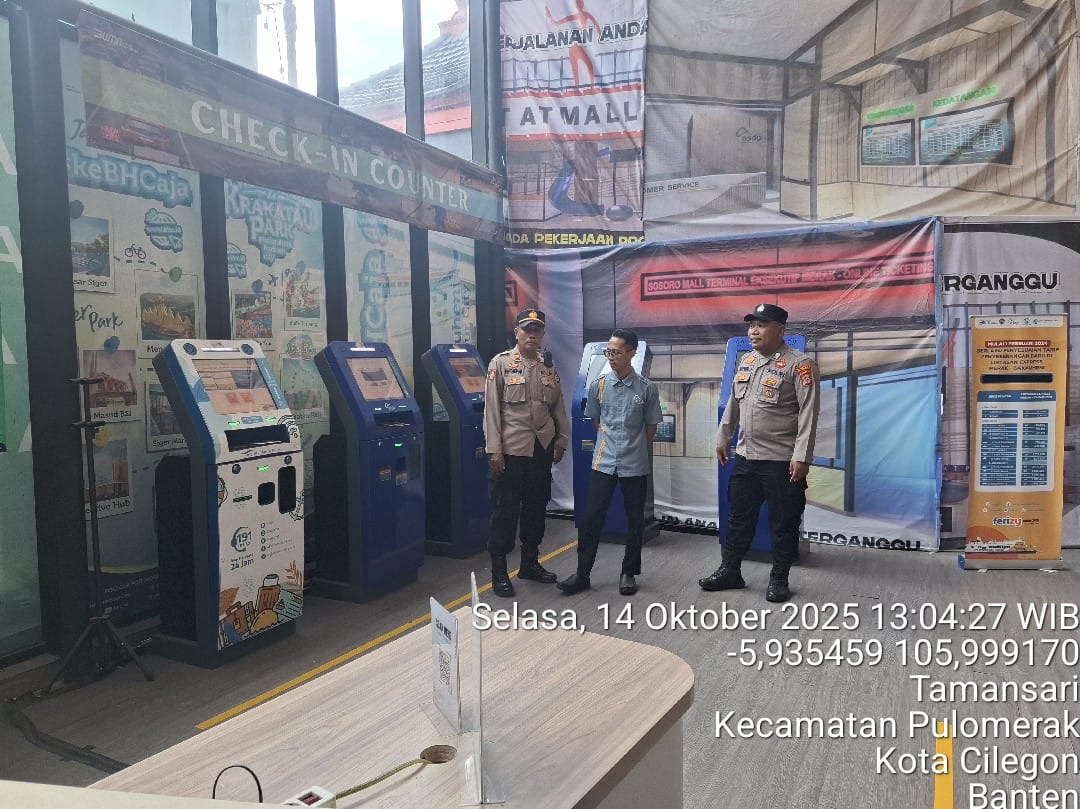 Cilegon - Personel Polsek Kskp Merak Polres Cilegon Polda Banten melaksanakan sambang dan patroli kawasan pelabuhan merak dalam rangka menjaga Harkamtibmas di Kawasan Pelabuhan Merak, Selasa (14/10/2025).