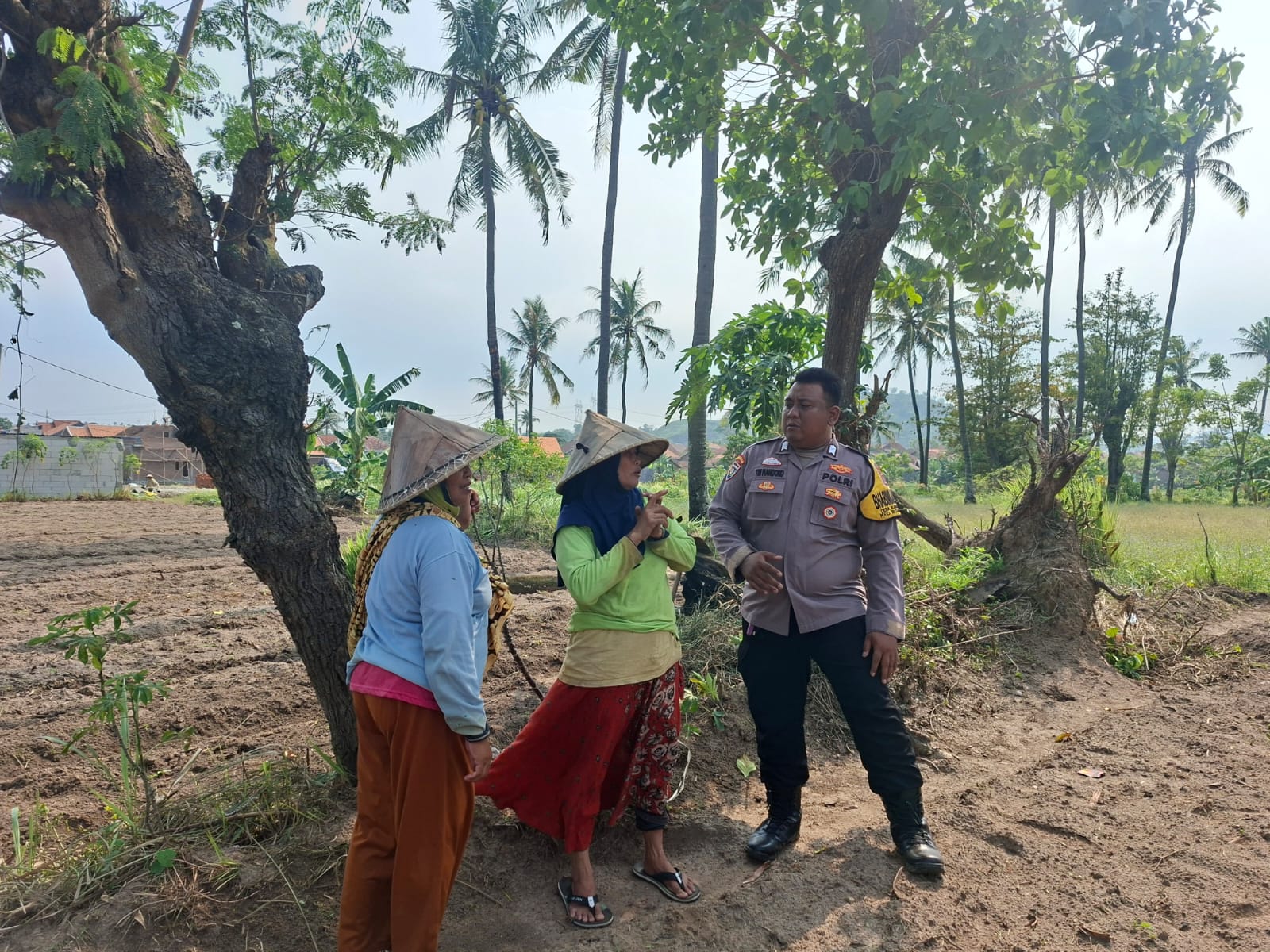 Bripka Tri Handoko Bhabinkamtibmas Desa Karang Kepuh Sambang Emak-Emak Berikan Sosialisasi 110 dan Himbauan Kamtibmas
