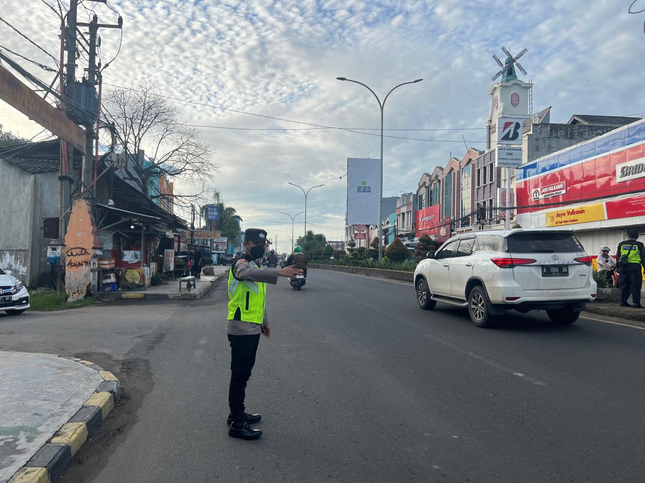Cilegon,Polres Cilegon Polda Banten Pada Kamis/09/10/2025 Pukul 06.30 Wib, Personil Siwas Polres Cilegon, Brigpol Hadi sudrajat melaksanakan kegiatan pengaturan arus lalu lintas di Jalur Protokol jalan utama Kota Cilegon tepat nya di jalur protokol Kota Cilegon.