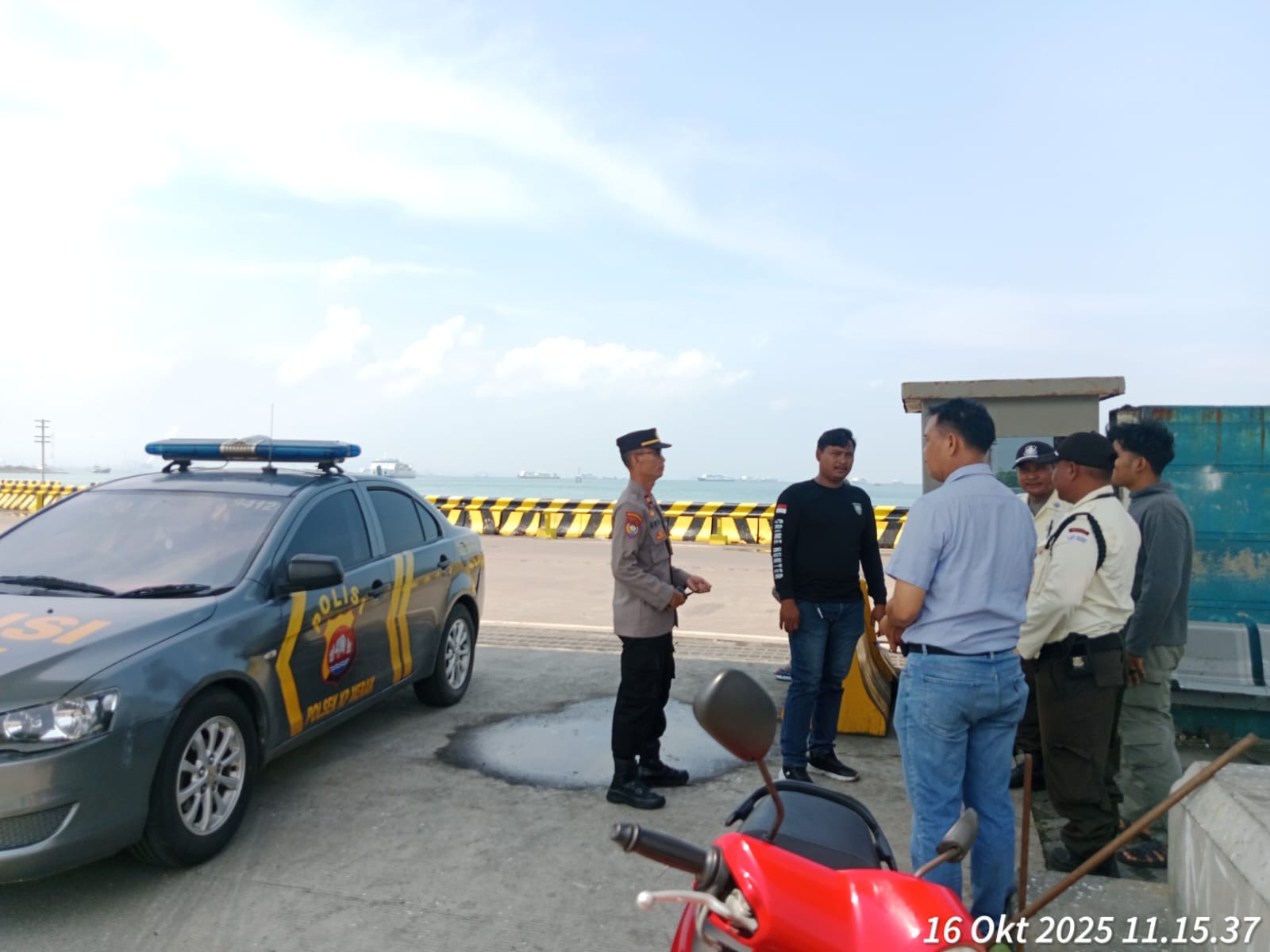 Cilegon - Personel Polsek Kskp Merak Polres Cilegon Polda Banten melaksanakan sambang dan patroli kawasan pelabuhan merak dalam rangka menjaga Harkamtibmas di Kawasan Pelabuhan Merak, Kamis (16/10/2025).