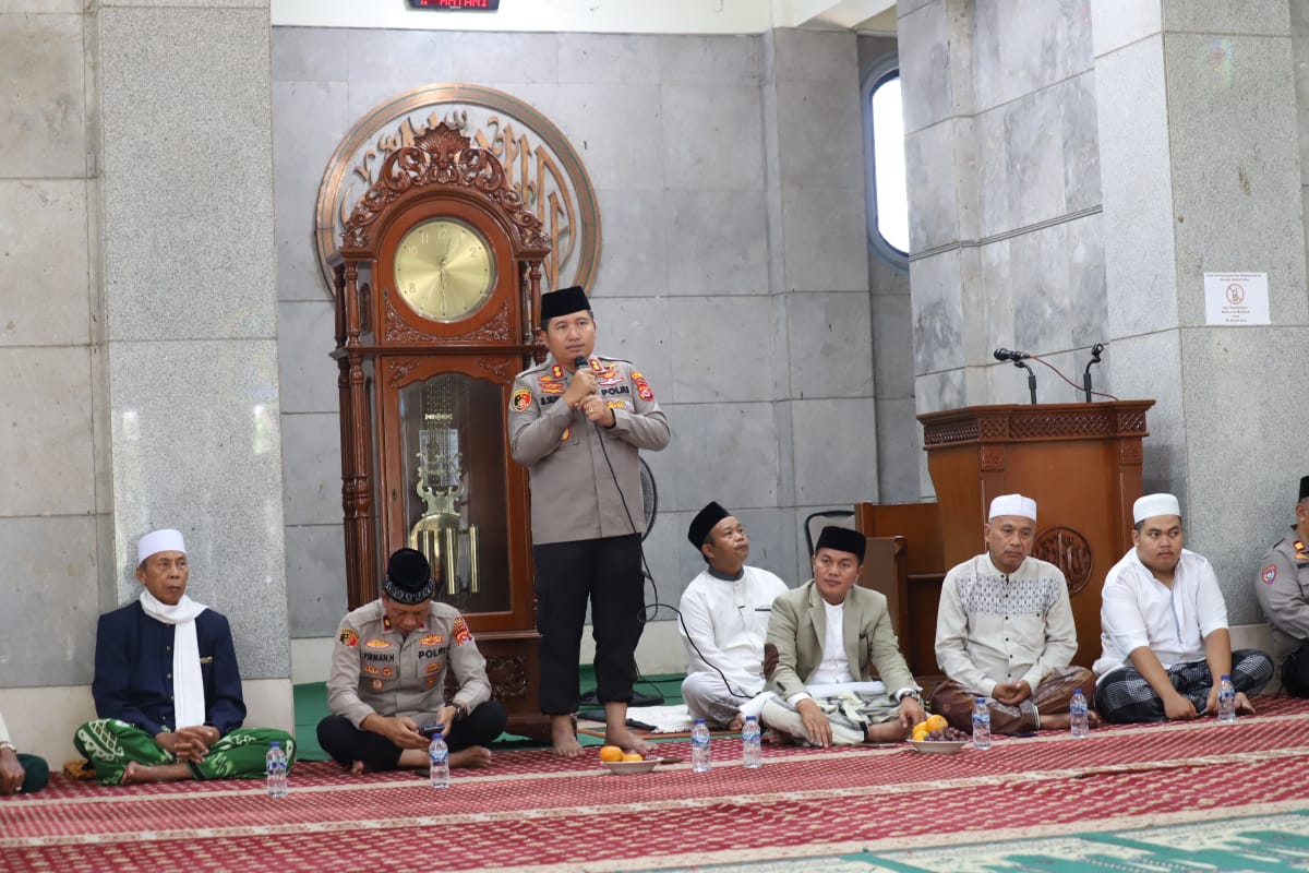 Cilegon – Dalam upaya mempererat hubungan dengan masyarakat serta memperkuat sinergitas dalam menjaga keamanan dan ketertiban, Kapolres Cilegon Polda Banten, AKBP Dr. Martua Raja Taripar Laut Silitonga, S.H., S.I.K., M.Si., melaksanakan kegiatan Silaturahmi Jum’at Keliling (Jumling) di Masjid Baitul Islah, Link. Pegantungan, Kelurahan Jombang Wetan, Kecamatan Jombang, Kota Cilegon, Jumat (17/10/2025).