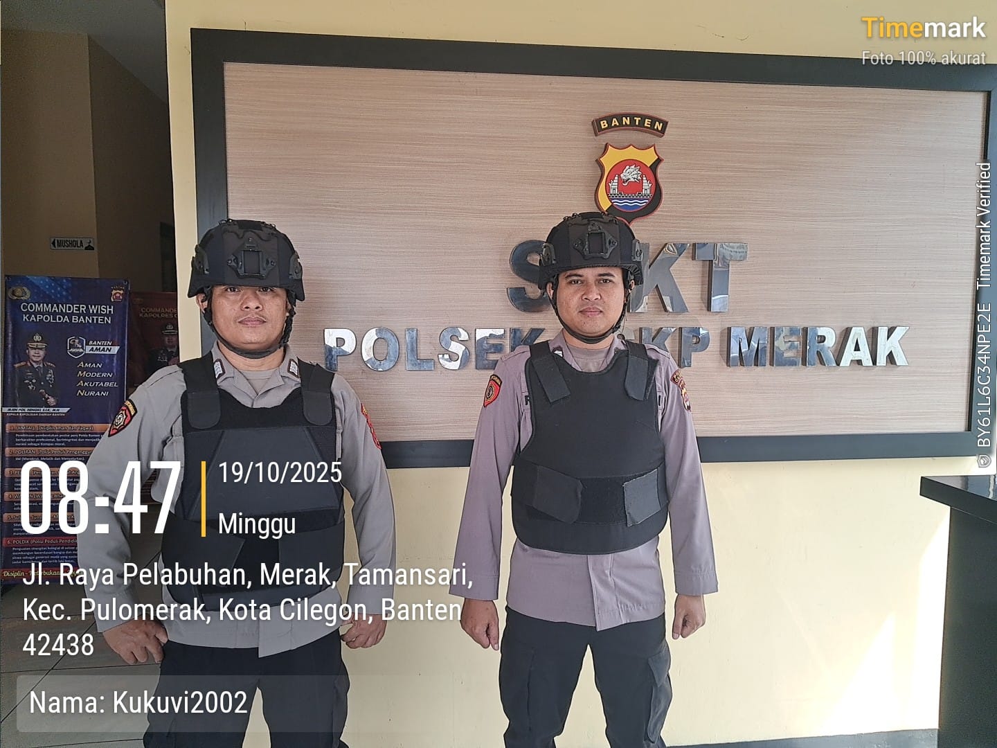 Cilegon - Personel piket jaga Polsek Kskp Merak Polres Cilgon Polda Banten melaksanakan siaga 1 Polsek pelaksanaan Sispam Mako oleh piket siaga dipimpin oleh Kspk Polsek Kskp Merak Polres Cilegon Polda Banten, Minggu (19/10/2025).