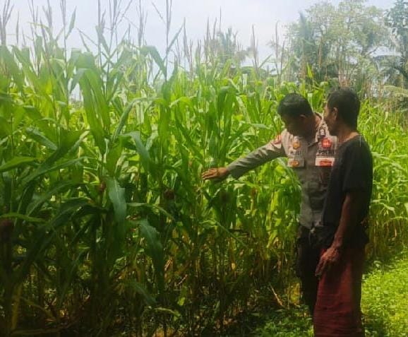 Monitoring ini dilakukan terhadap tanaman jagung yang telah memasuki usia tanam 75 hari. Selain melihat perkembangan tanaman, Bhabinkamtibmas juga melakukan dialog dengan petani untuk mengetahui kendala yang dihadapi serta memberikan motivasi dalam meningkatkan hasil pertanian.