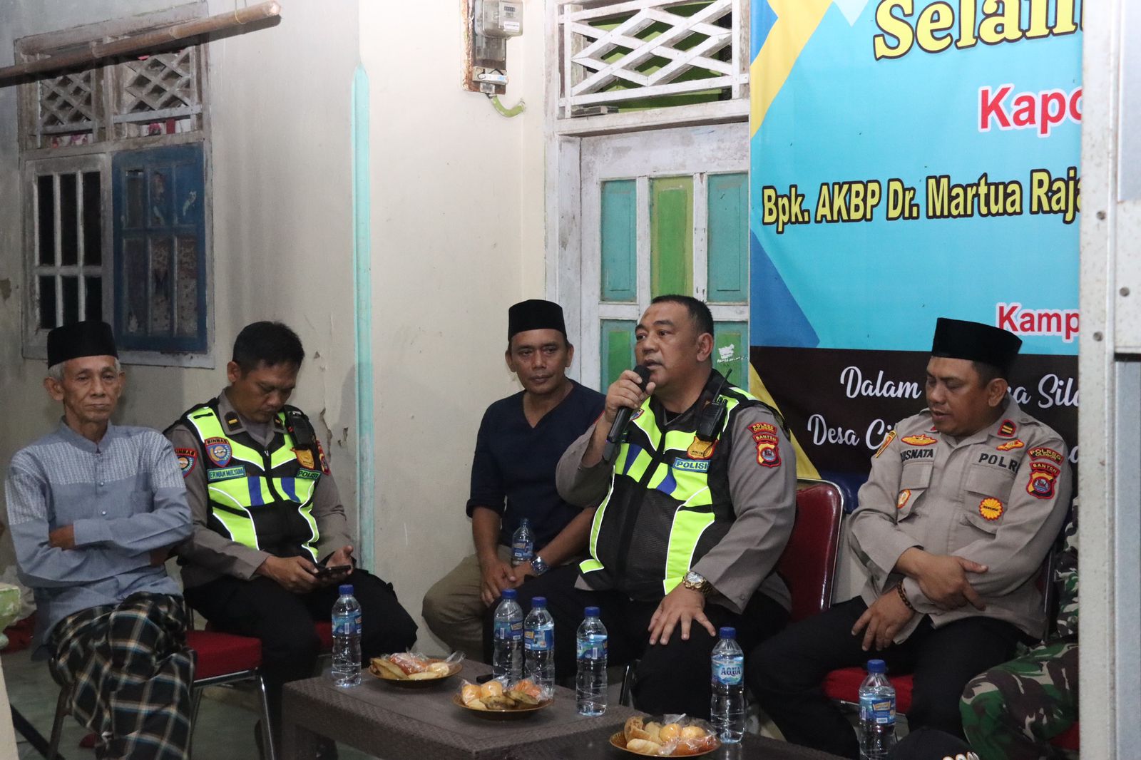 Cilegon – Dalam rangka memperkuat kemitraan antara Polri dan masyarakat dalam menjaga keamanan lingkungan, Kapolres Cilegon Polda Banten AKBP Dr Martua Raja Taripar Laut Silitonga S.H., S.I.K., M.Si melalui Kasat Binmas IPTU Muhyidin, S.H., melaksanakan kunjungan ke Pos Kamling Kampung Kopi RT 001 RW 008, Desa Cikolelet, Kecamatan Cinangka, Kabupaten Serang, Sabtu (25/10/2025) malam.