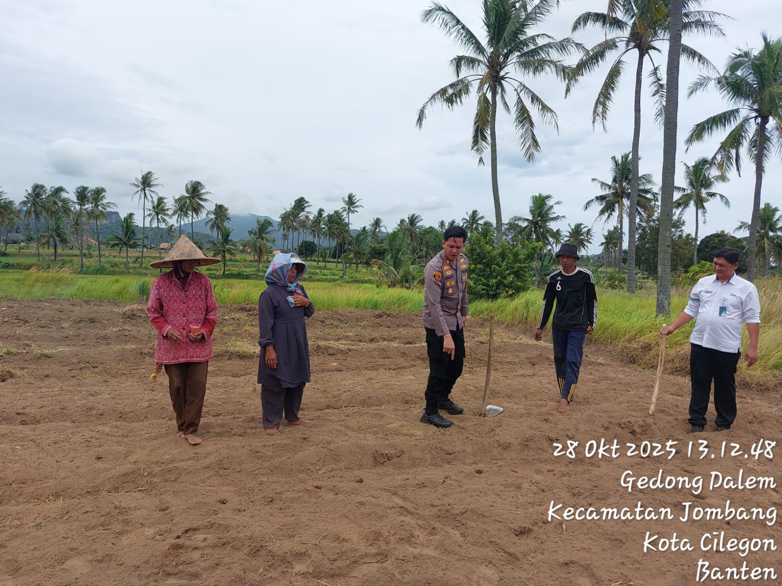 Cilegon - Melaksanakan program pemerintah, penanaman jagung dalam program ketahanan pangan, personil Polsek Kp Merak Polres Cilegon Polda Banten melaksanakan kegiatan peninjauan serta monitoring lokasi yang nantinya akan ditanami bibit jagung unggul di Desa Mangkunegara Kecamatan Bojonegara, Kabupaten Serang, Selasa (28/10/2025).