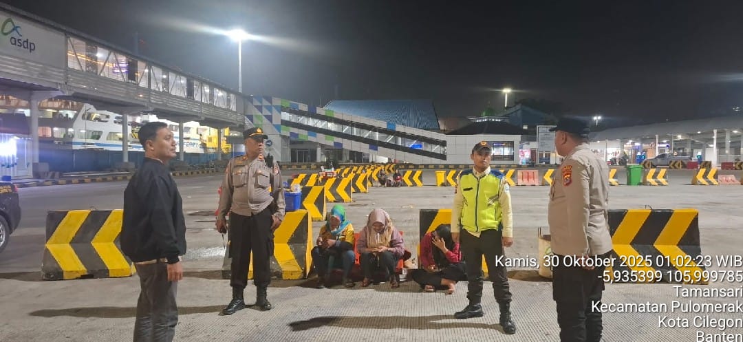 Cilegon - Personil Polsek Kskp Merak Polres Cilegon melaksanakan patroli di kawasan pelabuhan merak memberikan rasa aman dan damai, Kamis (30/10/2025)
