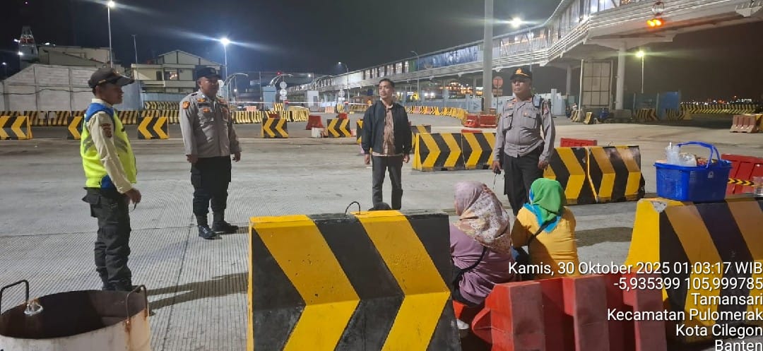 Cilegon - Personil Polsek Kskp Merak Polres Cilegon melaksanakan patroli di kawasan pelabuhan merak memberikan rasa aman dan damai, Kamis (30/10/2025)