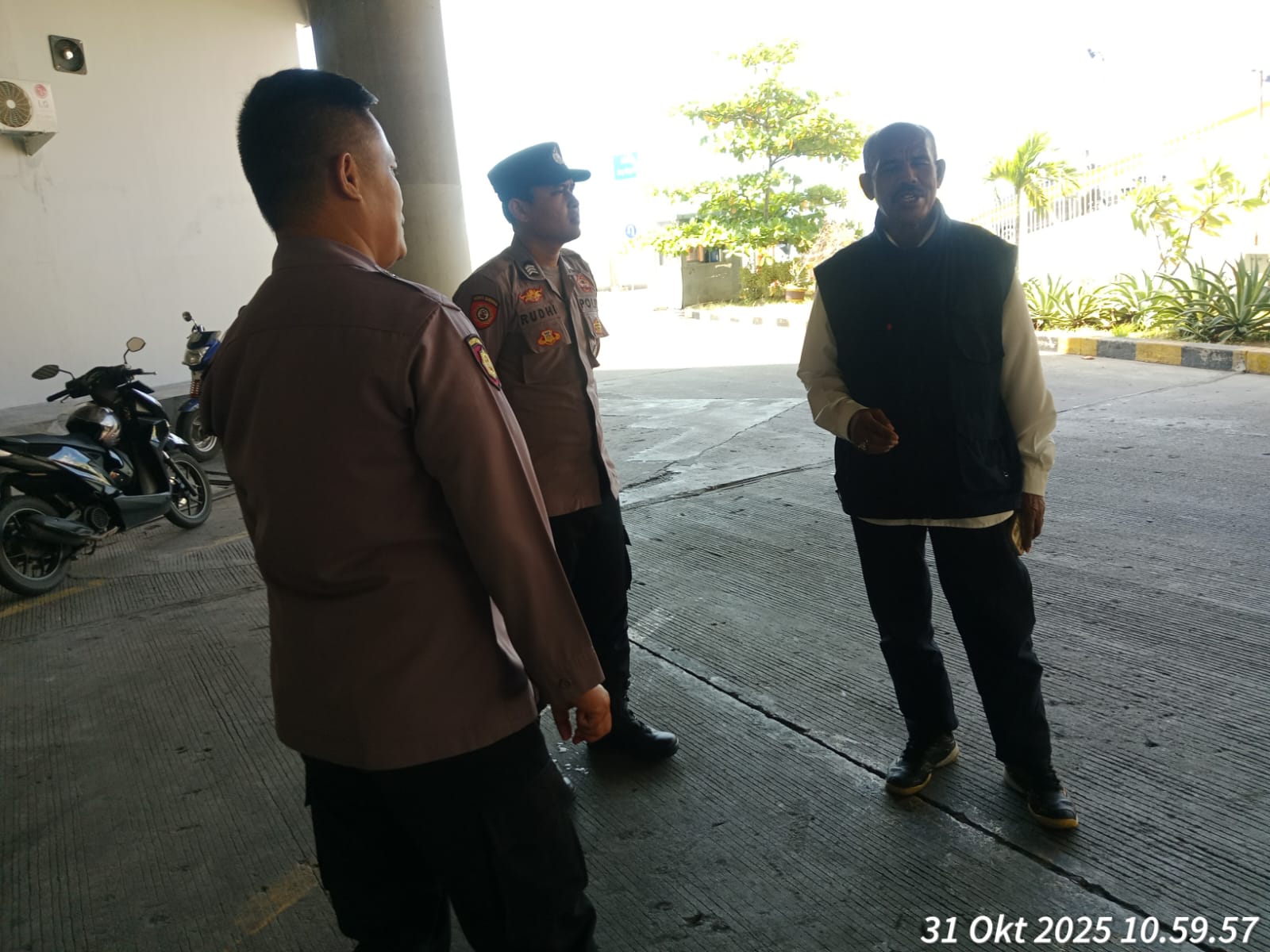 Cilegon - Personel Polsek Kskp Merak Polres Cilegon Polda Banten melaksanakan sambang dan patroli kawasan pelabuhan merak dalam rangka menjaga Harkamtibmas di Kawasan Pelabuhan Merak, Jumat (31/10/2025).