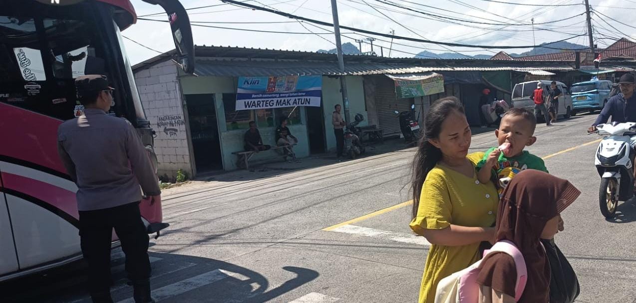 Anggota Polsek Anyar Dalam Pengaturan Lalu Lintas di Jalur Anyar - Cinangka