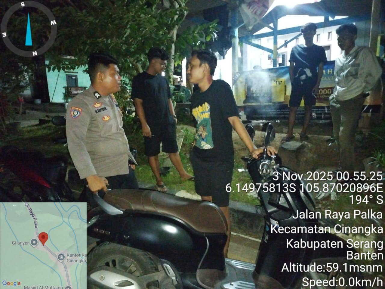 *Cilegon* – Dalam Rangka Pencegahan Kejahatan Jalanan dan Memelihara situasi keamanan dan menjaga serta memberikan rasa aman dan nyaman di masyarakat,Salah satu upaya untuk mewujudkan hal tersebut sebagaimana yang dilakukan oleh Personil Polsek Cinangka Polres Cilegon Polda Banten melaksanakan giat patroli blue light malam hari hingga menjelang pagi, Senin (03/11/2025).