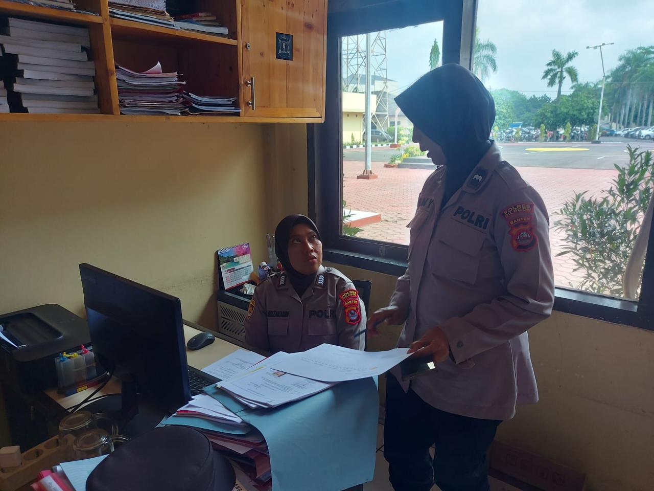 Cilegon,Polres Cilegon Polda Banten Pada Sabtu/08/11/ 2025 Pukul 10.00 Wib, Personil Siwas Polres Cilegon, Brigadir Aipda Emy Prasetyo melakukan pengechekan terhadap Fungsi fungsi Bag Log Polres Cilegon.