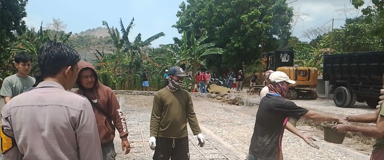Anggota Bhabinkamtibmas Hampiri Warga Gotong royong Berikan Pesan Kamtibmas