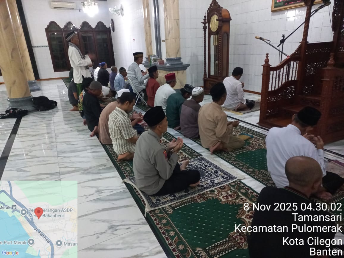 Cilegon – Personil Kskp Merak Polres Cilegon Polda Banten menggelar kegiatan Pembinaan Rohani dengan shalat subuh keliling di Masjid Yang ada Di Daerah hukum Polsek Kp Merak Polres Cilegon Polda Banten, Sabtu (08/11/2025).