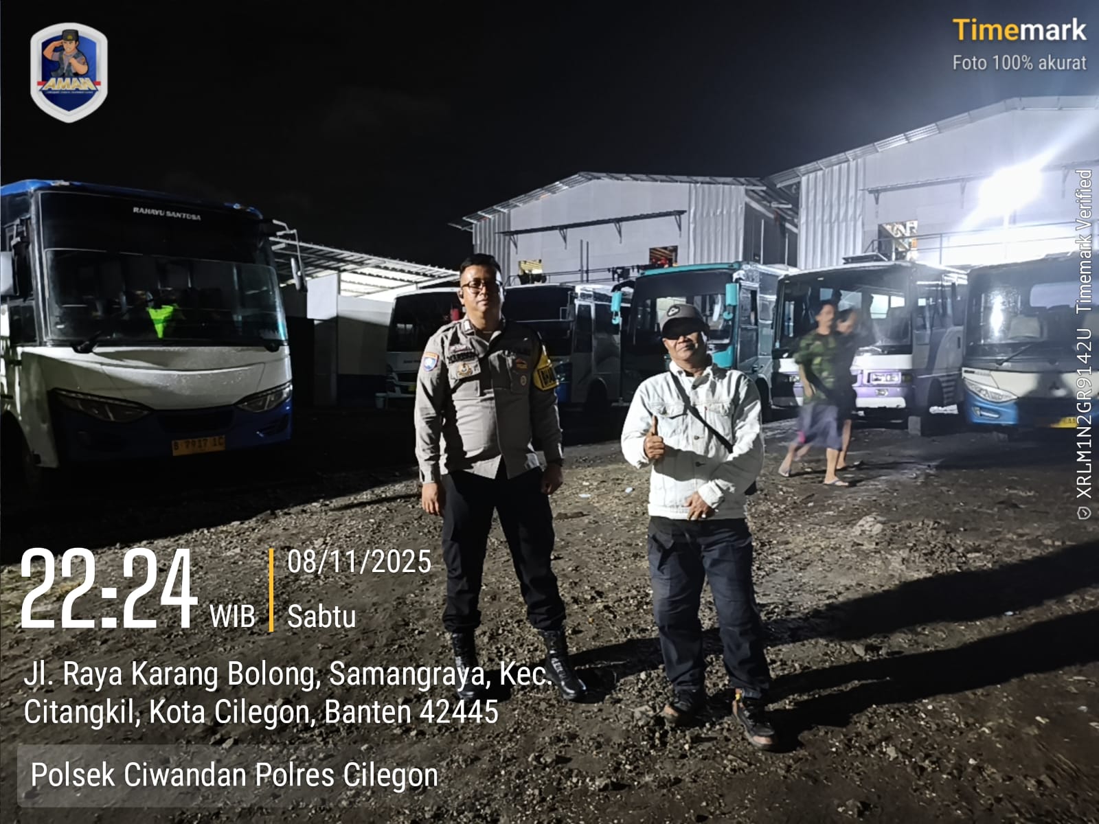 Cilegon - Upaya mengantisipasi aksi kejahatan pada daerah binaan dan memberikan rasa aman dan nyaman kepada warga binaan, Bhabinkamtibmas Polsek Ciwandan Polres Cilegon Polda Banten sambangi warga pada malam hari, Swnin (10/11/2025).