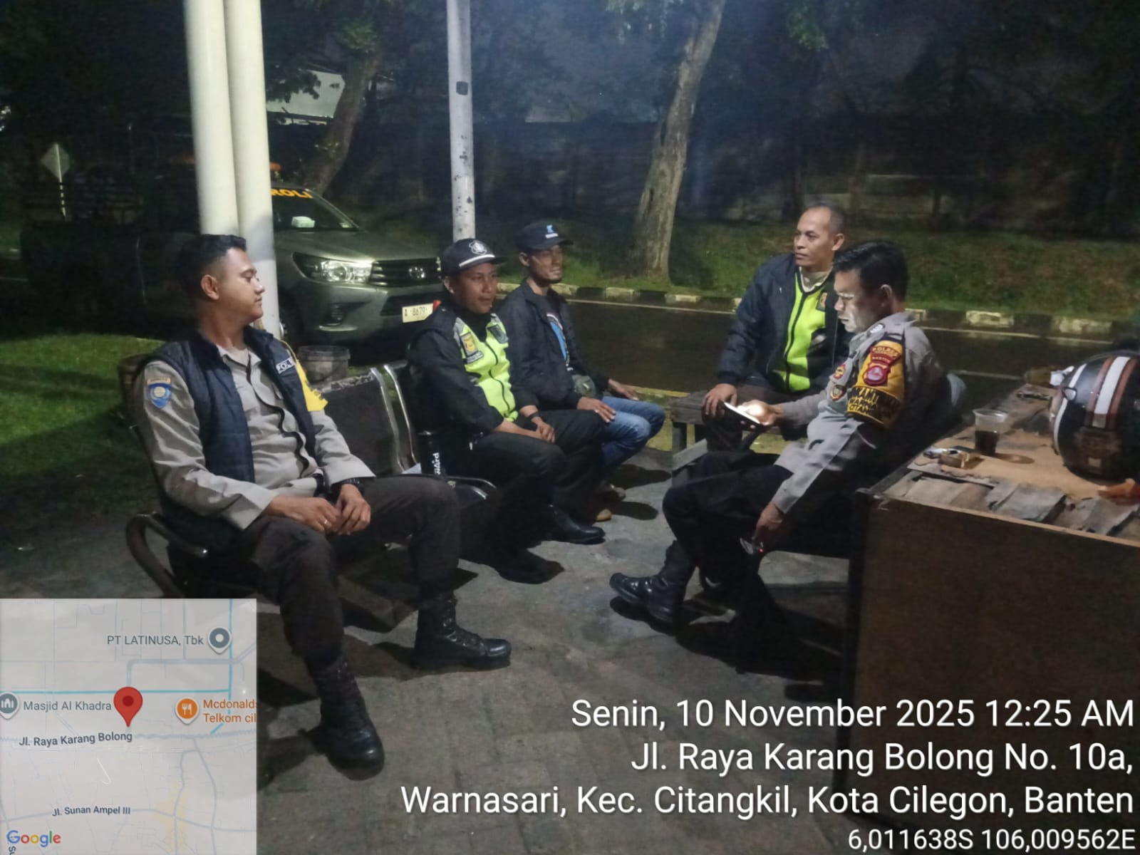 Cilegon - Upaya mengantisipasi aksi kejahatan pada daerah binaan dan memberikan rasa aman dan nyaman kepada warga binaan, Bhabinkamtibmas Polsek Ciwandan Polres Cilegon Polda Banten sambangi warga pada malam hari, Swnin (10/11/2025).