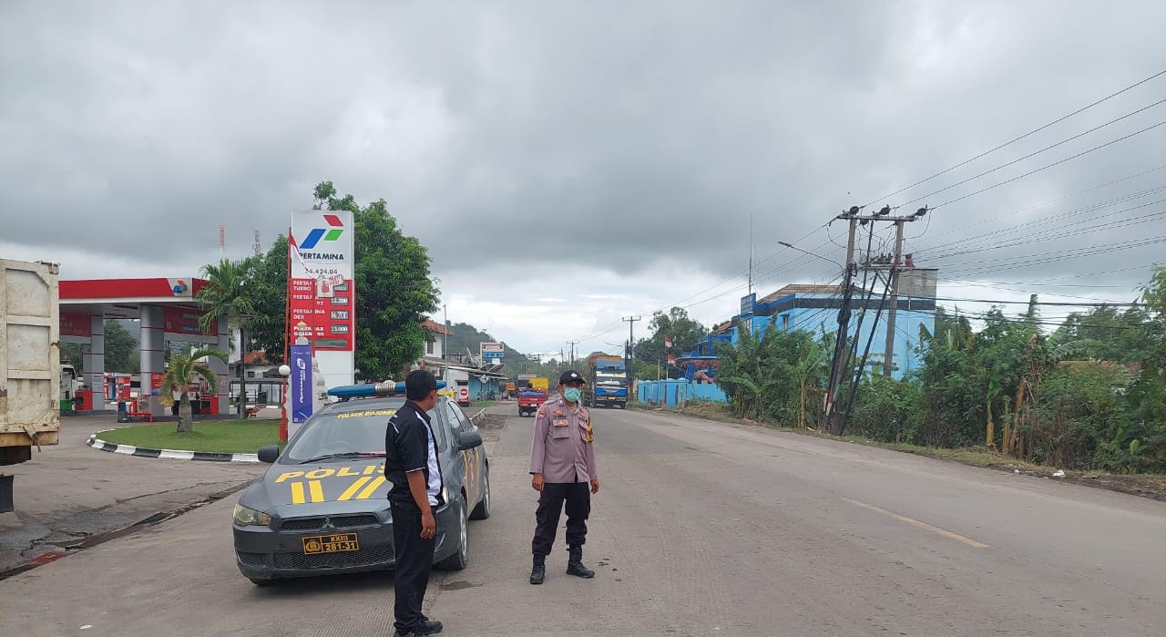 Anggota Polsek Bojonegara Laksanakan Gatur Lalin di Depan SPBU Bojonegara