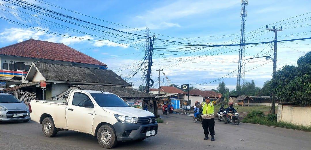 Strong Poin Sore, Bripka Bambang dan Bripka Geri Polsek Bojonegara Laksanakan Gatur lalu lintas di Bojonegara