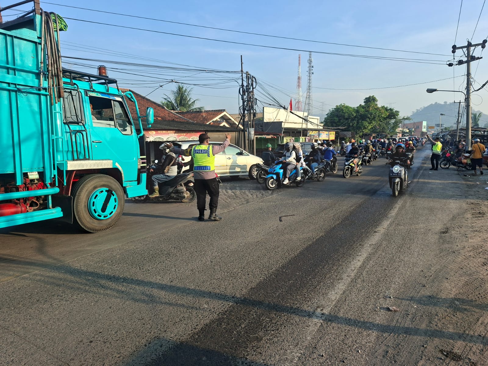 Cilegon - Dalam Mewujudkan Aksi Nyata Pelayanan Kepada Masyarakat,Personil Polsek Bojonegara Polres Cilegon Polda Banten Laksanakan Strong Poin Pengaturan Lalu-lintas, Selasa (18/11/2025).
