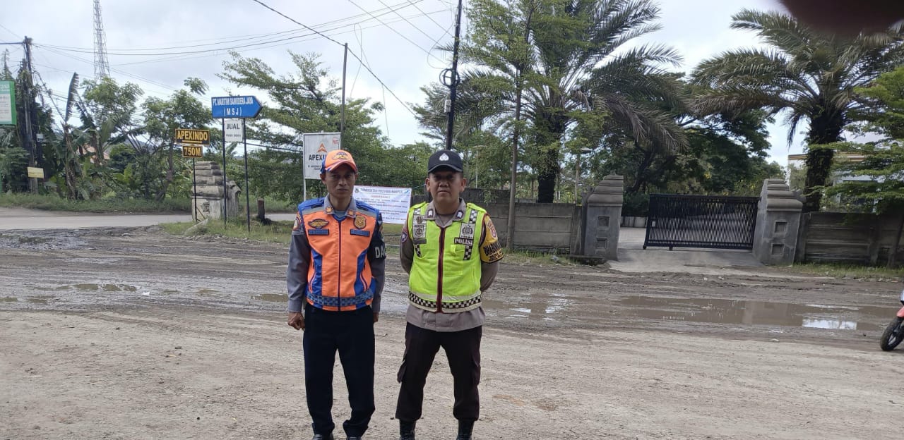 Demi Kelancaran Lalin, Bhabinkamtibmas dan Dishub Laksanakan atur Lalin Di Jalan Raya PT MSJ Bojonegara