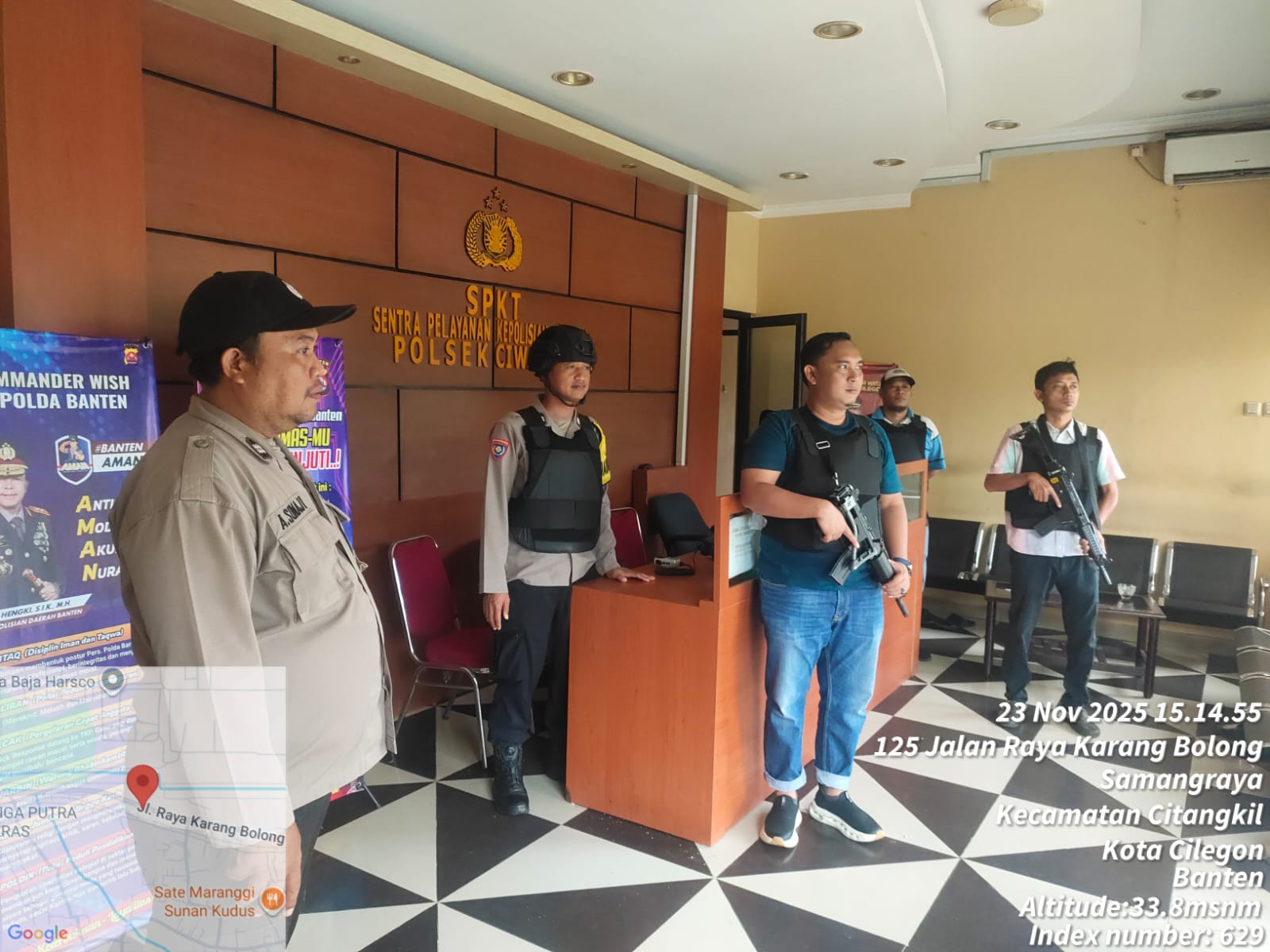 Cilegon - Dalam Kesiap Siagaan dan Memperketat Penjagaan Mako (Markas Komando), Personil Polsek Ciwandan Polres Cilegon Polda Banten melaksanakan Sistem Pengamanan Markas Komando (Sispam Mako), Minggu (23/11/2025).