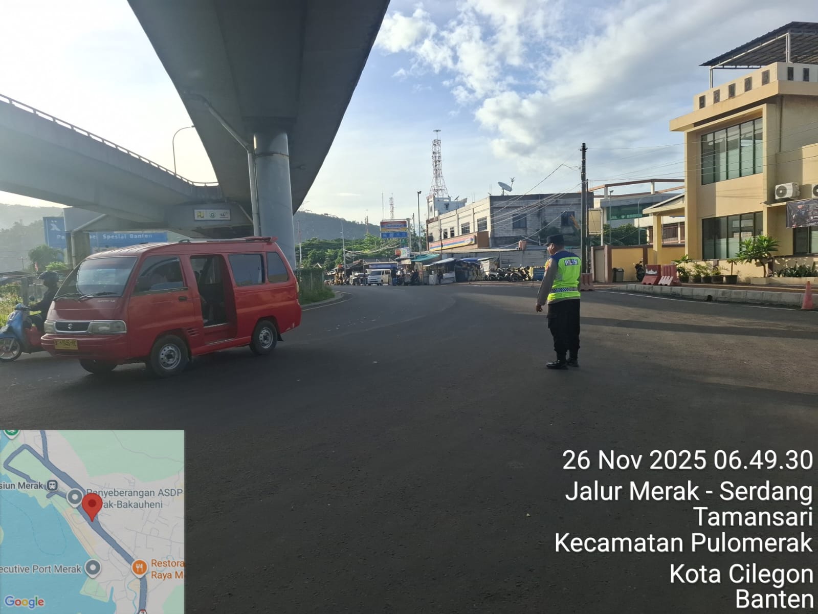 Kapolres Cilegon Polda Banten AKBP Martua Raja Taripar Laut Silitonga melalui Kapolsek Kskp Merak AKP Gusti Almasri P menyampaikan bahwa kegiatan pengaturan antrian ini adalah dalam rangka memberikan pelayanan kepada masyrakat yang akan menyebrang ke Bakauheni atau Sumatra melalui jalur laut dengan menaiki kapal Ferry.