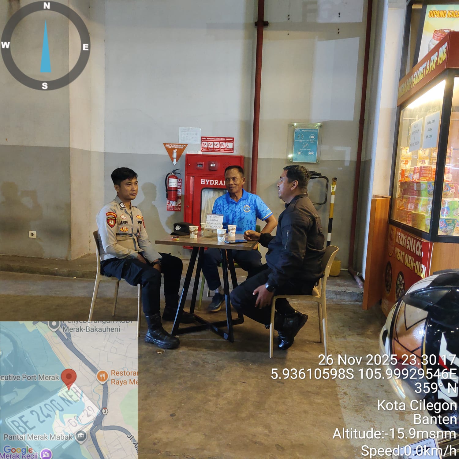 Cilegon - Personil Polsek Kskp Merak Polres Cilegon melaksanakan patroli di kawasan pelabuhan merak memberikan rasa aman dan damai, Kamis (27/11/2025)