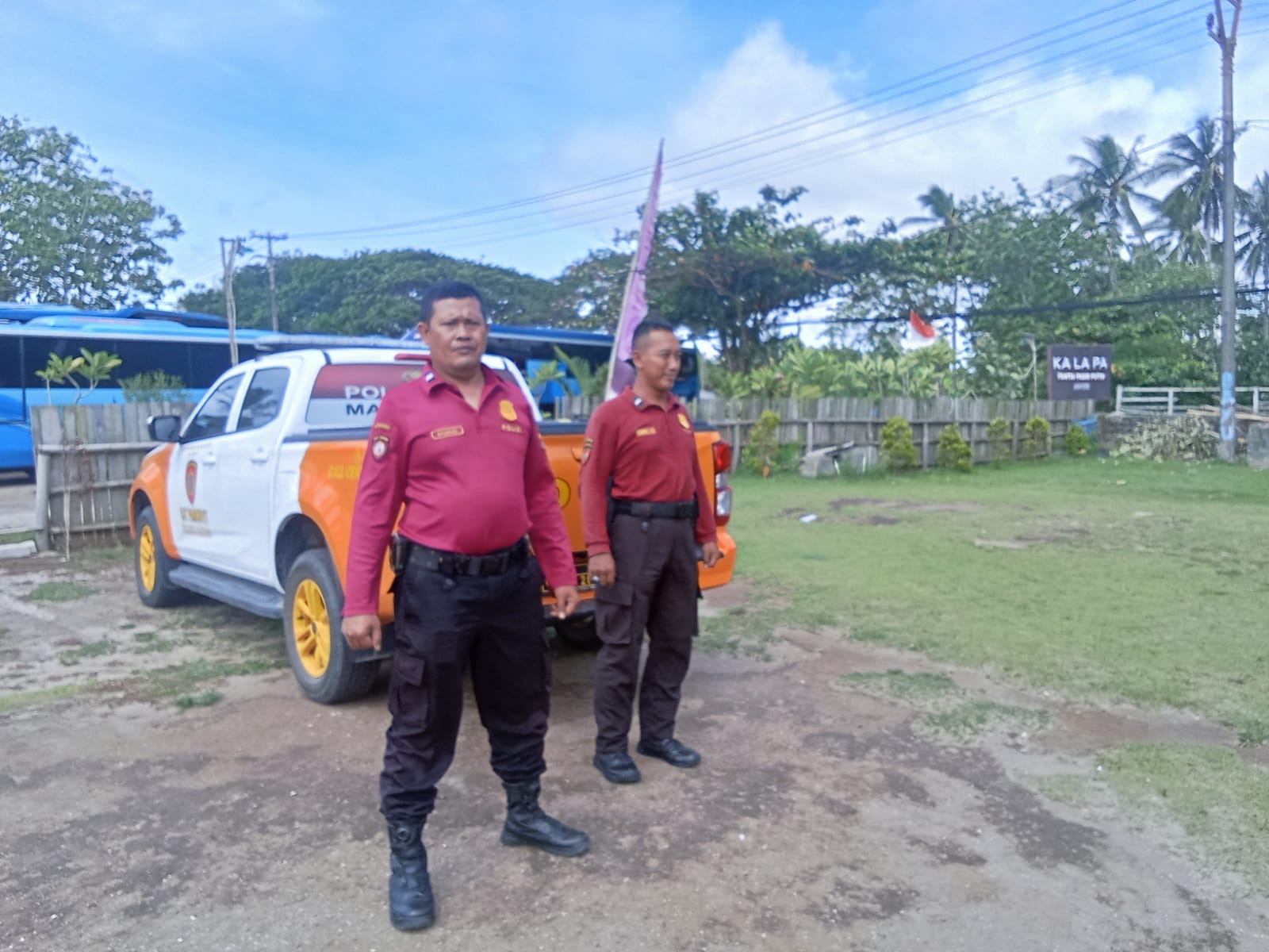 Personel Satpamobvit Polres Cilegon melaksanakan patroli wisata serta memberikan himbauan kepada para pengunjung, guna mewujudkan harkamtibmas di daerah hukum Polres Cilegon. Dengan pengawasan yang dilakukan oleh personel Satpamobvit Polres Cilegon, situasi di sekitar pantai ini tetap aman dari berbagai potensi ancaman.
