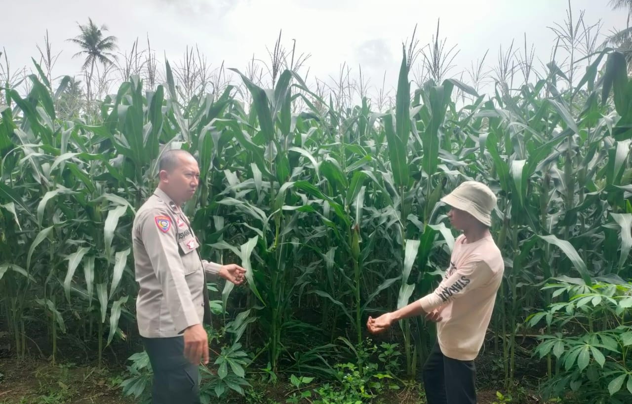 Personil Polsek Anyar Monitoring Tanaman Jagung di Kewilayahan