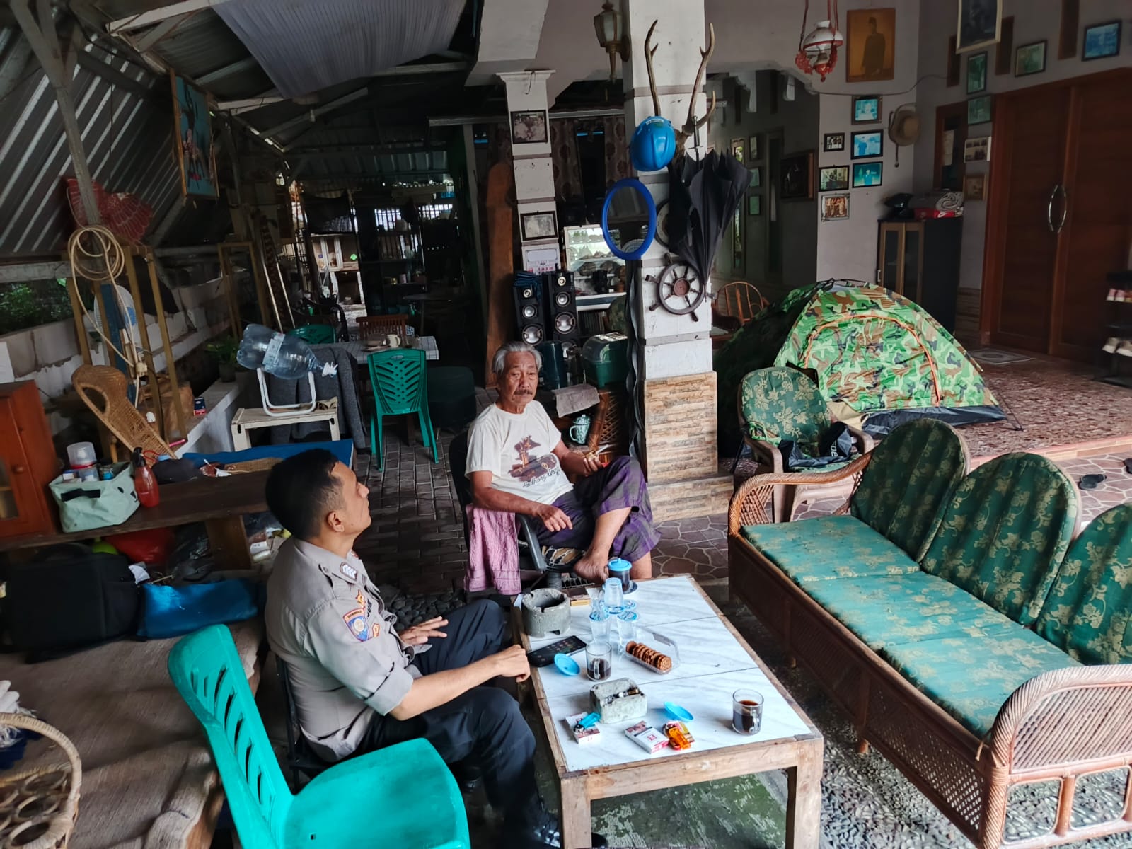 Anggota unit patroli samapta Polsek Cilegon sambang kepada warga jalin keakraban menjaga keamanan di lingkungan