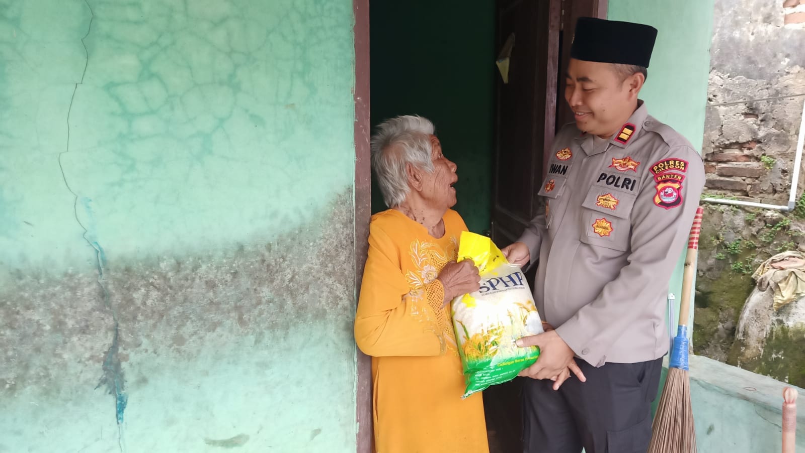 Kapolres Cilegon Polda Banten AKBP Dr. Martua Raja Taripar Laut Silitonga Melalui Kapolsek Anyar Polres Cilegon Polda Banten IPTU Iwan Sofiyan Bahwa Polsek Anyar Berikan Bantuan Sosial untuk masyarakat Desa Kosambironyok kec. anyar yang di distribusikan bersama Personil Polsek Anyar Polres Cilegon Polda Banten di Wilayah.