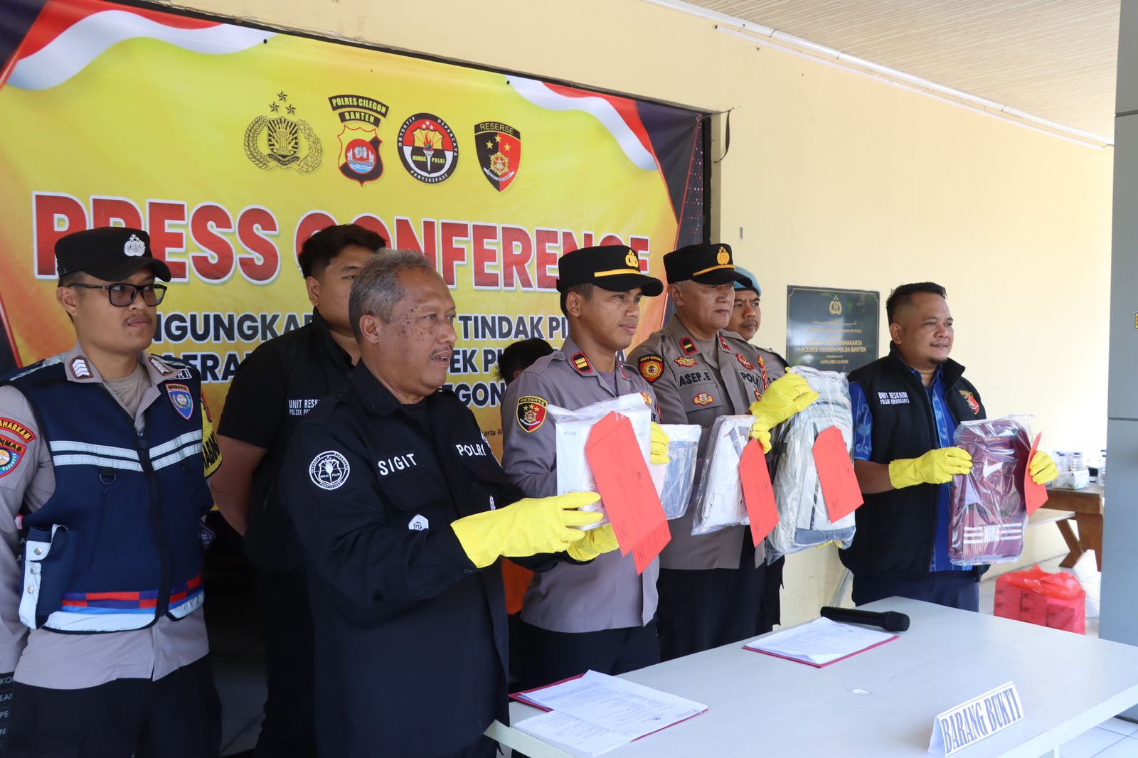 Kapolsek Purwakarta Polres Cilegon Polda Banten IPTU  Sukanda .S.M Pada saat press confrence pengungkapan kasus Pencurian HP yang terjadi di alun alun kota Cilegon dalam kegiatan senam bersama hari guru nasional pada hari Senin tanggal 24 November 2025  Pelapor sedang berada di alun-alun kota Cilegon dalam rangka mengikuti kegiatan hari guru,pada saat kegiatan senam bersama, Pelapor sedang membeli makanan di salah satu stand yang ada di lapangan alun-alun tersebut,  kemudian ada seseorang yang menyenggol tas ransel Pelapor yang sedang Pelapor pakai di bagian belakang badan Pelapor, lalu pada saat Pelapor duduk mau makan di sekitar stand tersebut, pelapor melihat tas ransel Pelapor dalam keadaan resleting terbuka. Ketika Pelapor mengecek isi dari tas ransel Pelapor, Pelapor tidak menemukan handphone yang sebelumnya Pelapor taruh di dalam tas ransel Pelapor tersebut/hilang, lalu Pelapor dan teman Pelapor Sdr Amirudin  mencari keberadaan HP Pelapor yang hilang tersebut, kemudian ada 1 (satu) orang yang Pelapor dan Sdr. Amirudin curigai karena tidak memakai kostum yang seragam dengan peserta yang lainnya, Ketika Pelapor mencurigai  1 (satu) orang tersebut, orang tersebut jalan cepat dan berlari menuju kebelakang kolam air mancur, lalu Sdr. Amirudin melaporkan kepada salah satu anggota polisi yang sedang melakukan pengamanan di sekitar alun-alun tersebut bahwa ada yang dicurigai menjadi pelaku pencurian tersebut. Kemudian ada beberapa anggota polisi yang ikut melakukan pengejaran terhadap terduga pelaku tersebut dan akhirnya terduga pelaku tersebut berhasil diamankan dan di bawa ke pos security, setelah sampai di pos security tas terduga pelaku di buka ternyata benar ada HP Pelapor yang dicuri oleh orang tersebut. Dengan kejadian tersebut pelapor mengalami kerugian sebesar RP 2.600.000 (dua juta enam ratus ribu rupian) dan selanjutnya melaporkan ke Polsek Purwakarta Polres Cilegon Polda Banten