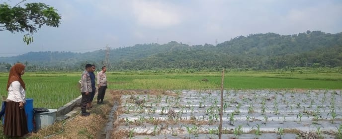KANIT BINMAS BERSAMA PERSONIL BHABINKAMTIBMAS LAKUKAN MONITORING PERTUMBUHAN TANAMAN JAGUNG DI WILAYAH PABEAN