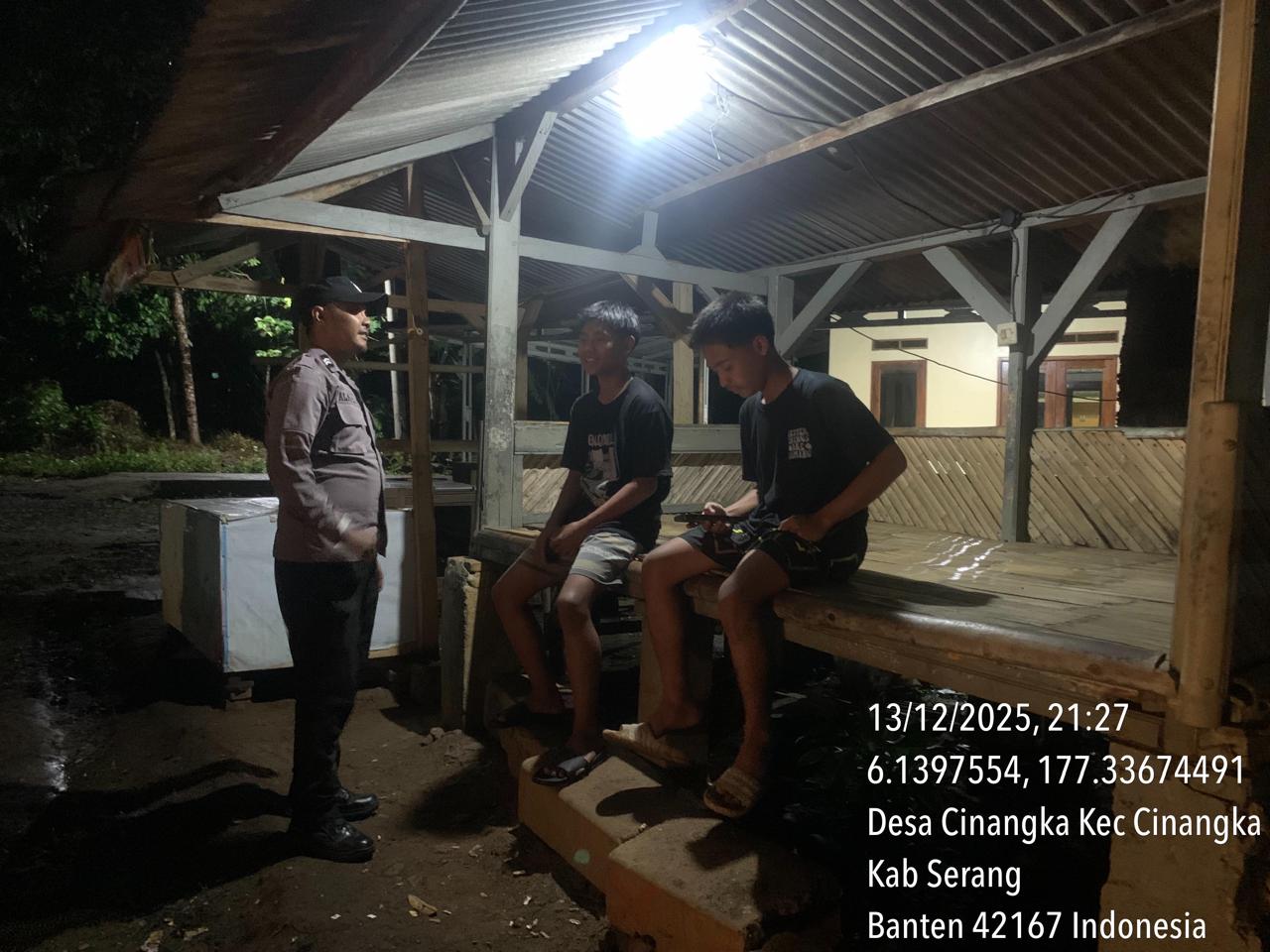 *Polres Cilegon* || Personil Bhabinkamtibmas Polsek Cinangka melaksanakan Program Komandan Wish Kapolda Banten RONDA SATKAMLING menyampaikan komunikasi dengan Petugas Siskamling agar berperan aktif dalam menciptakan Harkamtibmas yang aman dan Kondusif, Minggu (14/12/2025).