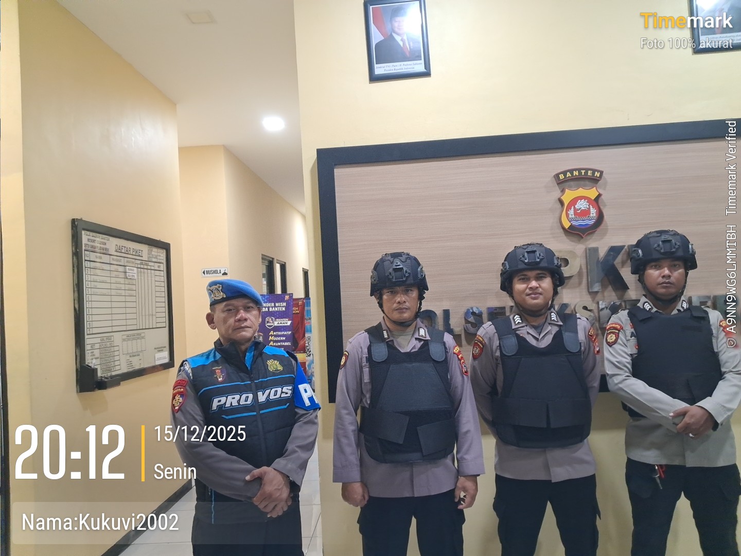 Cilegon - Personel piket jaga Polsek Kskp Merak Polres Cilgon Polda Banten melaksanakan siaga 1 Polsek pelaksanaan Sispam Mako oleh piket siaga dipimpin oleh Kspk Polsek Kskpy Merak Polres Cilegon Polda Banten, Senin (15/12/2025).