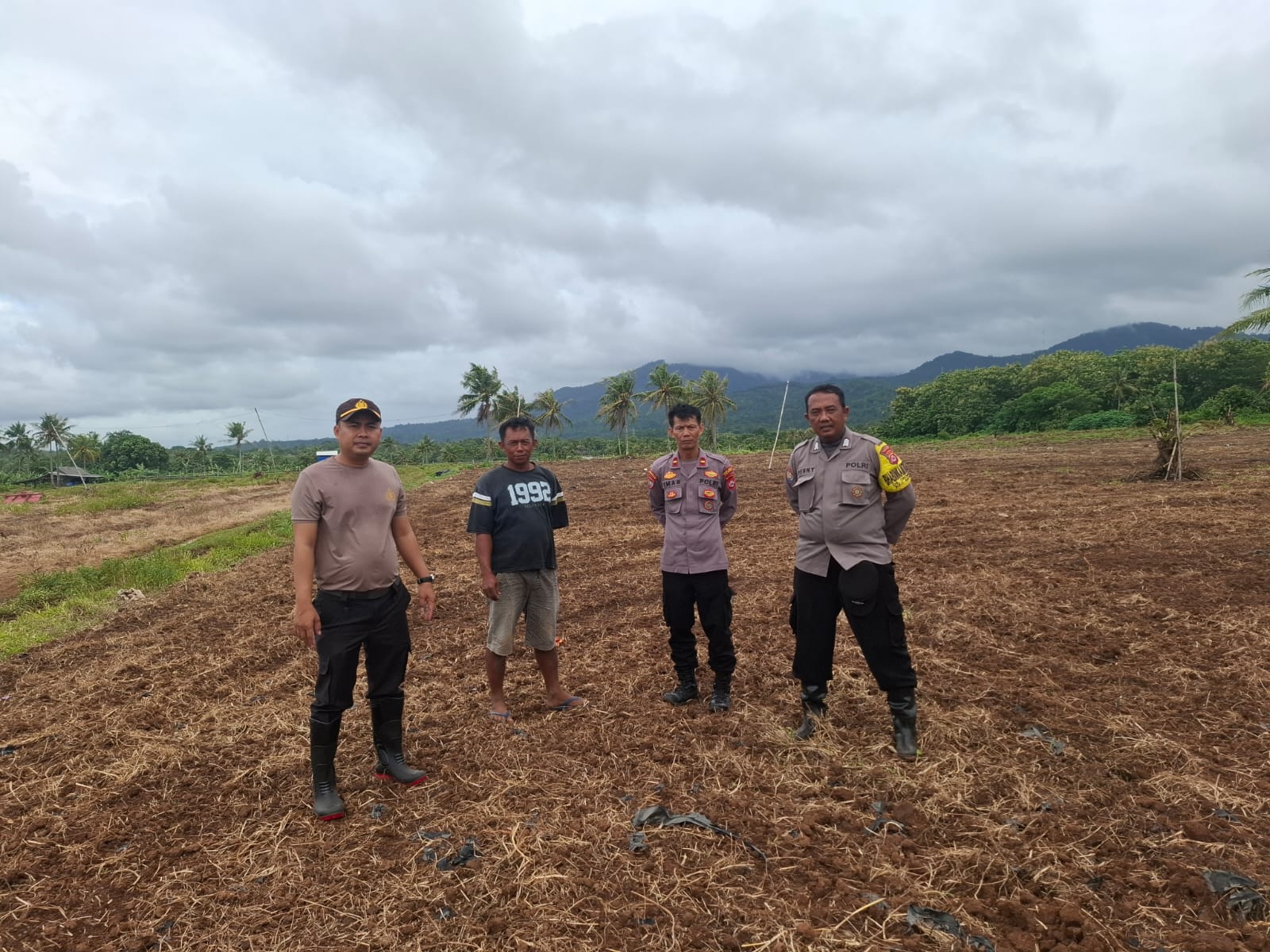Kapolres Cilegon AKBP AKBP Dr. Martua Raja Taripar Laut Silitonga melalui Kapolsek Anyar IPTU Iwan Sofiyan Kegiatan ini dilakukan monitoring dan pendampingan oleh Kanit Binmas dan  Bhabinkamtibmas kepada Pertanian monitoring perluasan area tanam jagung dalam kesiapan tanam jagung.