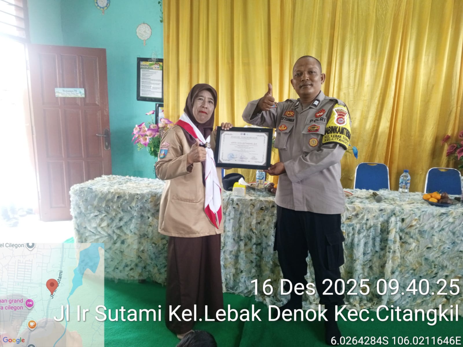 Cilegon - Bhabinkamtibmas Kelurahan Lebak Denok Polsek Ciwandan Polres Cilegon Polda Banten AIPTU Yudi Setiawan melakukan silaturahmi ke SDN Kubles, Rabu (17/12/2025).