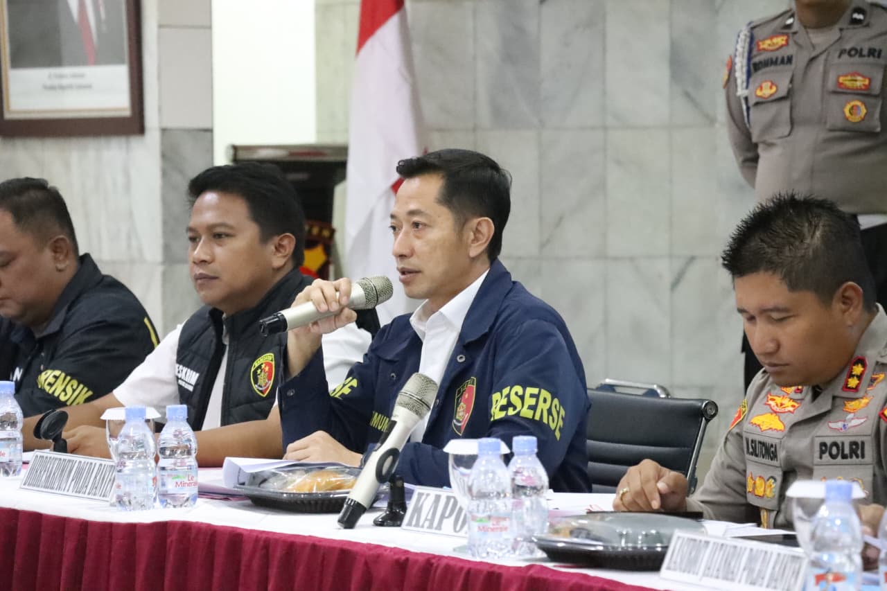 Press conference tersebut disampaikan oleh Ditreskrimum Polda Banten Kombes Pol Dian Setyawan didampingi Kapolres Cilegon AKBP Dr. Martua Raja Taripar Laut Silitonga, Plh. Kabid Humas Polda Banten AKBP Meryadi, Wakapolres Cilegon Kompol Arief Nazarudin, Kasubdit Jatanran Ditreskrimum Polda Banten Kompol Yeremia Iwo, Kasat Reskrim Polres Cilegon AKP Yoga Tama, Ka Instalasi Forensik Modikolegal RSUD Cilegon Dr. Baeti Adhayati SP FM, Puslabfor Polri Kompol Irfan Rofik.