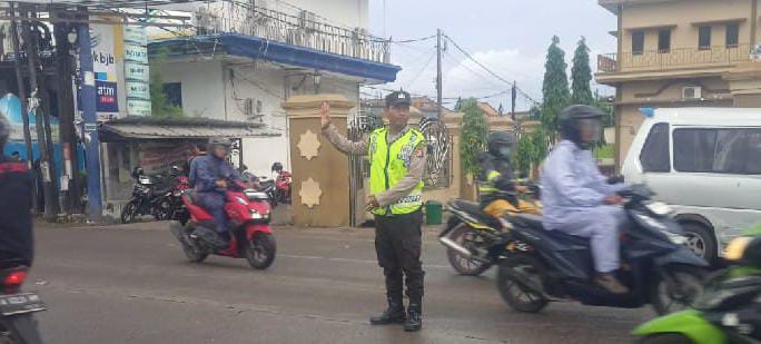 Personil Polsek Anyar Urai Kendaraan Dengan Lakukan Pengaturan Lalu Lintas