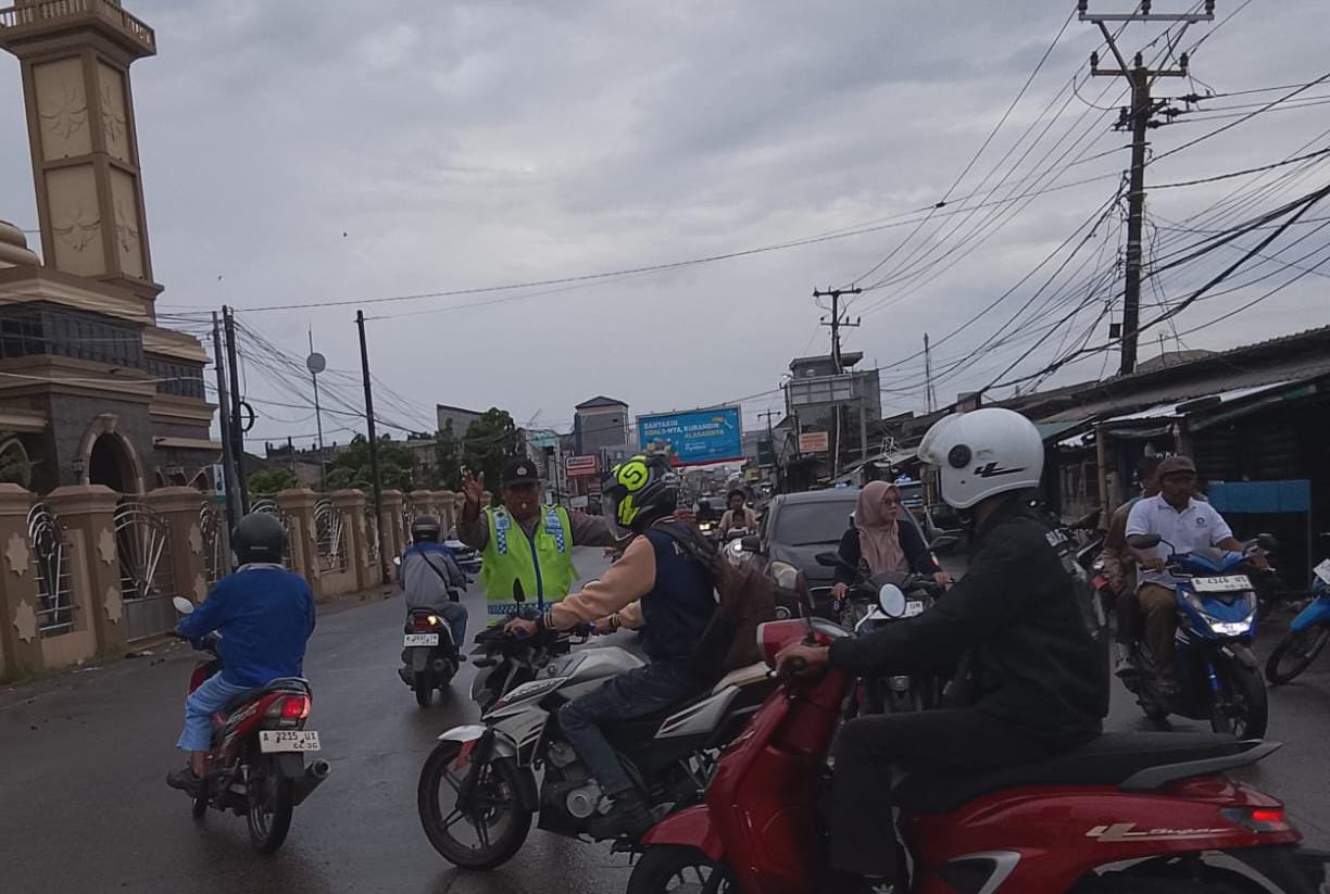 Polsek Anyar Urai Kendaraan Dengan Melakukan Pengaturan Lalu Lintas
